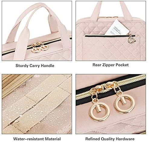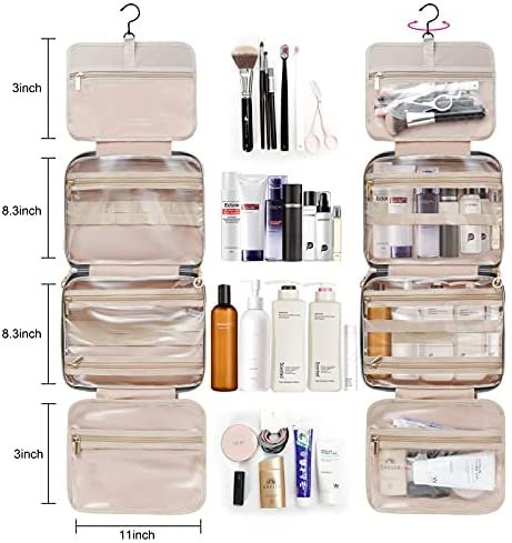 Travel in Style: Great travel makeup oragnizer for overnight staying, a long journey, gym shower, camping, beach and outdoor activities. Roomy enough to hold full-sized bottles.