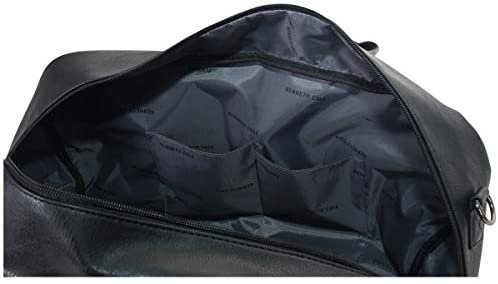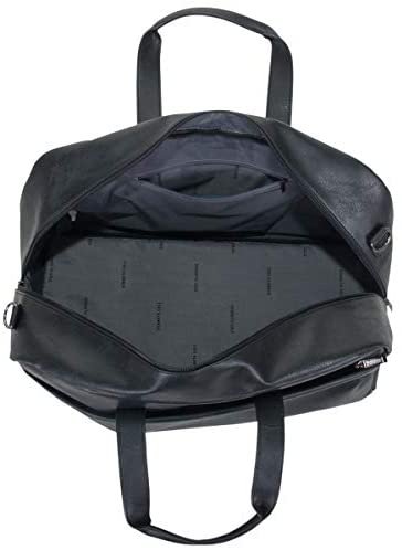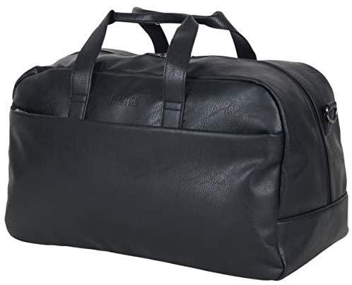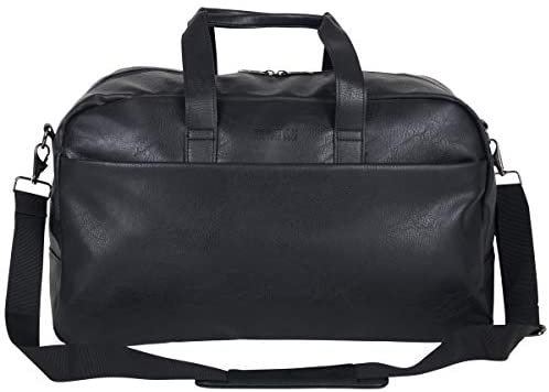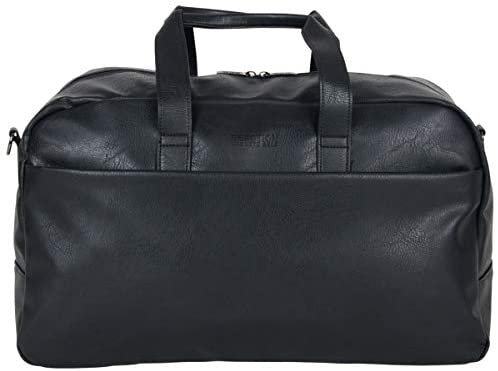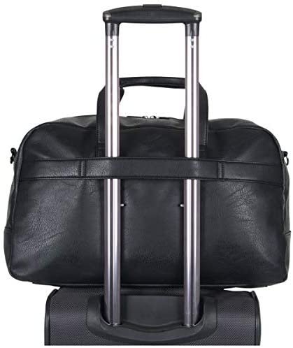 Duffel bag is made of a stylish pebbled faux leather exterior that is water resistant and features a tear-resistant fully lined interior.