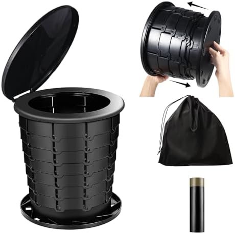 【EASY TO USE AND STORE】Very portable It only takes a few seconds to rotate this travel toilet clockwise. After use, simply rotate it counterclockwise to press it into a disc shape and put it into the included storage bag. Lightweight and compact at 2.75 lbs, you can easily store it in your backpack, luggage or car for easy access at all times.