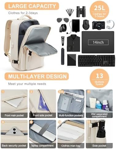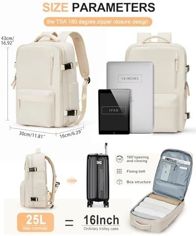 【Carry on Backpack Flight Approved】 External dimensions: 43cm * 30cm * 16cm /16.93″* 11.81“ * 6.29″ ; Weight: 2.2Lb / 1KG. The travel backpack meets the carry-on requirements of many airlines. The air backpack can be placed under plane seat or overhead that save your carry-on charges. Note: Please check with your airline for size restrictions before your trip.